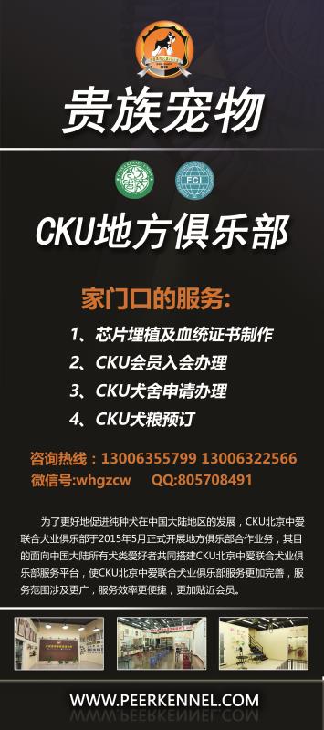 CKU武漢地方俱樂部,做為CKU地方服務機構,旨在為中國大陸地區(qū)所有犬類愛好者搭建更便捷的服務平臺,本著服務于會員的宗旨,為會員提供最優(yōu)質(zhì)的業(yè)務范圍:發(fā)展CKU會員及辦理會員相關業(yè)務,新生犬電子芯片埋置及血統(tǒng)證書頒發(fā),協(xié)助CKU賽事承辦,CKU相關產(chǎn)品的代銷。