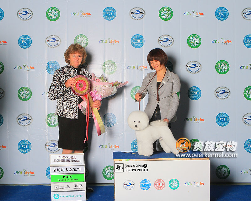 Discovery不愧為我們貴族寵物新一代的小戰神.繼廊坊AKU亞洲全犬種國際冠軍展獲得全場后備總冠軍之后,給我們上演了一場犬展界的“帽子戲法”,在此次CKU舉辦的中國全犬種冠軍展上,連續三次獲得全場總冠軍BIS1x3的驕人成績,獲得了諸位裁判的青睞。真是激動人心的時刻!這證明范老師這段時間的辛苦付出是值得的,更加另人欣慰的是,初上賽場的Nat也榮獲Baby全場后備總冠軍的好成績,同時也恭喜我們可愛的Rainblow為它的新主人高小姐贏得了一份榮譽,真是一群讓人贊嘆的孩子們~~